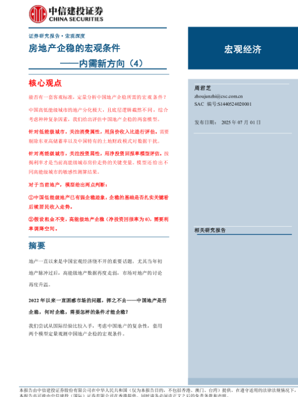 【中信建投证券】【20250701】内需新方向(4):房地产企稳的宏观条件-32页 宏观策略