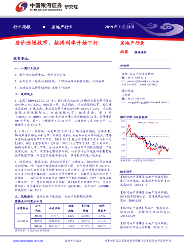 【银河证券】【20190121】房地产行业周报:房价涨幅收窄,按揭利率开始下行-25页 行业研究