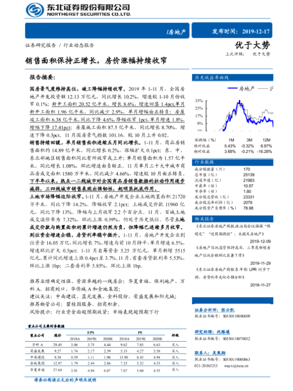 【东北证券】【20191217】房地产行业动态报告:销售面积保持正增长,房价涨幅持续收窄-14页 行业研究