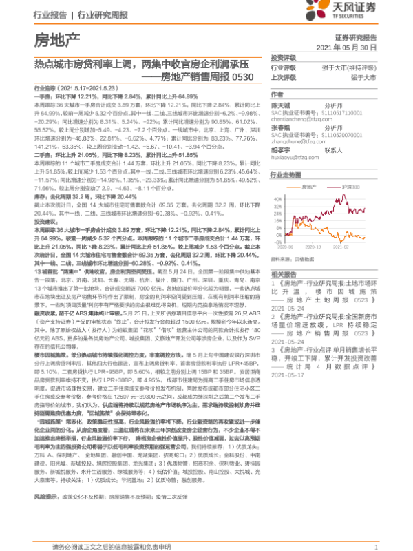 【天风证券】【20210530】热点城市房贷利率上调,两集中收官房企利润承压-14页 行业研究