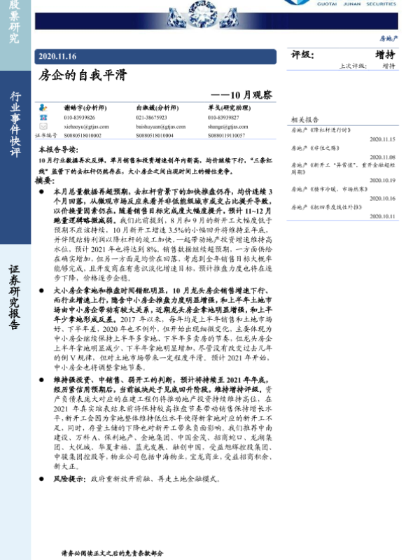 【国泰君安证券】【20201116】房企的自我平滑-3页 行业研究