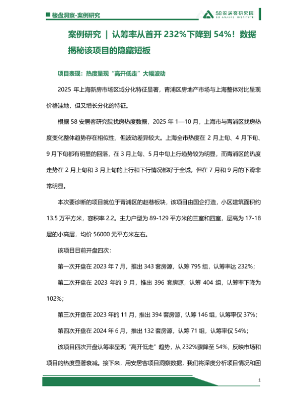 【58安居客研究院】【2025】楼盘洞察-案例研究|认筹率从首开232%下降到54%!数据揭秘该项目的隐藏短板-14页 市场调研
