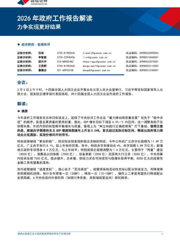 【国信证券】【2026】2026年政府工作报告解读力争实现更好结果-10页 证券期货研究报告