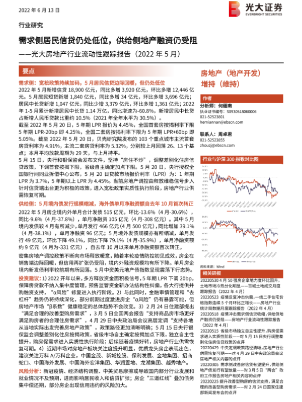 【光大证券】【20220613】光大房地产行业流动性跟踪报告-13页 行业研究
