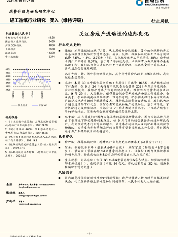 【国金证券】【20211007】20211007-国金证券-行业周报:轻工造纸行业研究:关注房地产流动性的边际变化-12页 行业研究