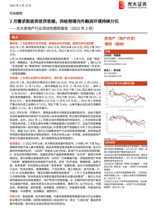 【光大证券】【20220313】2月需求侧居民信贷收缩,供给侧境内外融资环境持续分化-12页 行业研究