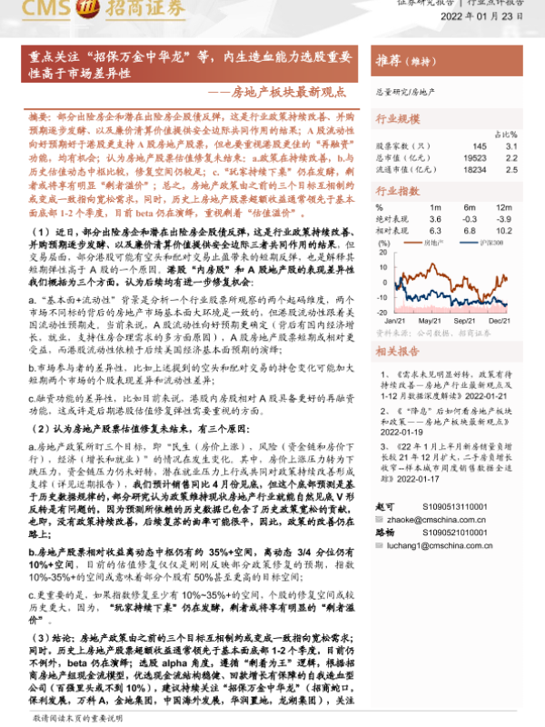 【海通证券】【20220123】房地产板块最新观点:重点关注“招保万金中华龙”等,内生造血能力选股重要性高于市场差异性-3页 证券期货研究报告