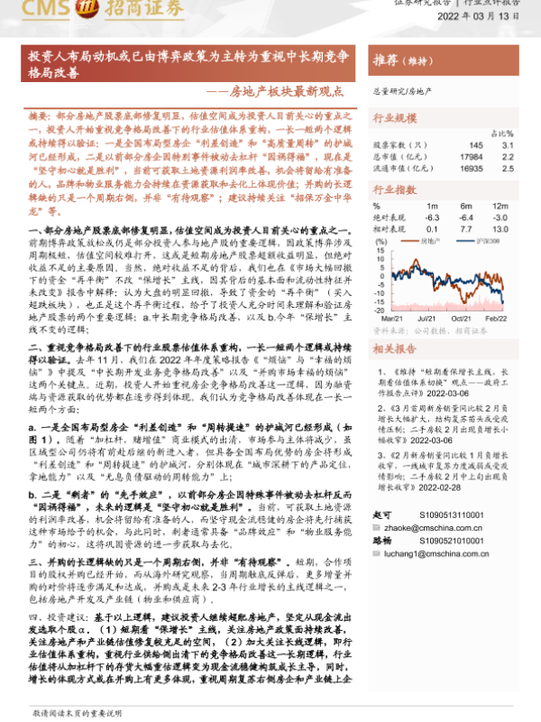 【海通证券】【20220313】房地产板块最新观点:投资人布局动机或已由博弈政策为主转为重视中长期竞争格局改善-3页 行业研究