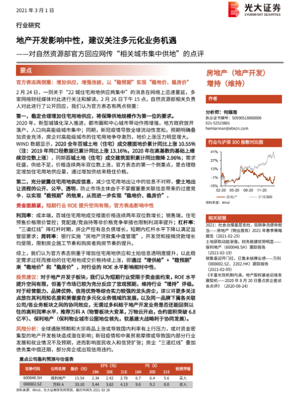 【光大证券】【20210301】对自然资源部官方回应网传‘相关城市集中供地’的点评-8页 行业研究