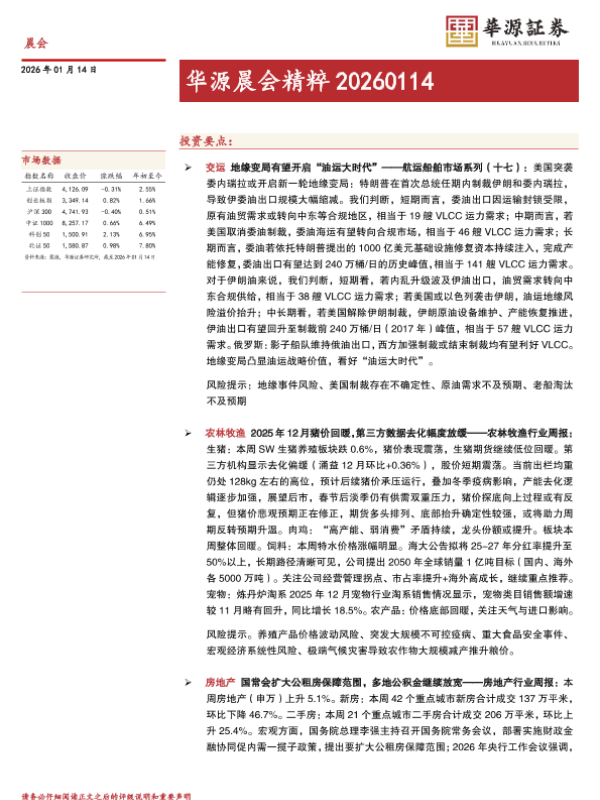 【华源证券】【202601】华源晨会精粹 20260114-9页 行业研究