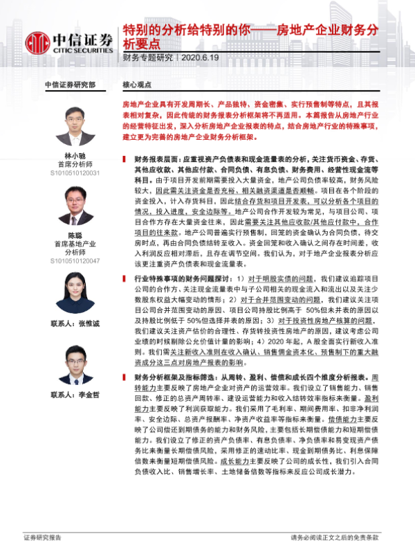 【中信证券】【20200619】特别的分析给特别的你——房地产企业财务分析要点-29页 行业研究