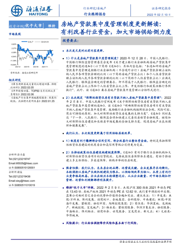 【海通证券】【20220210】房地产贷款集中度管理制度更新解读:有利改善行业资金,加大市场供给侧力度-3页 行业研究