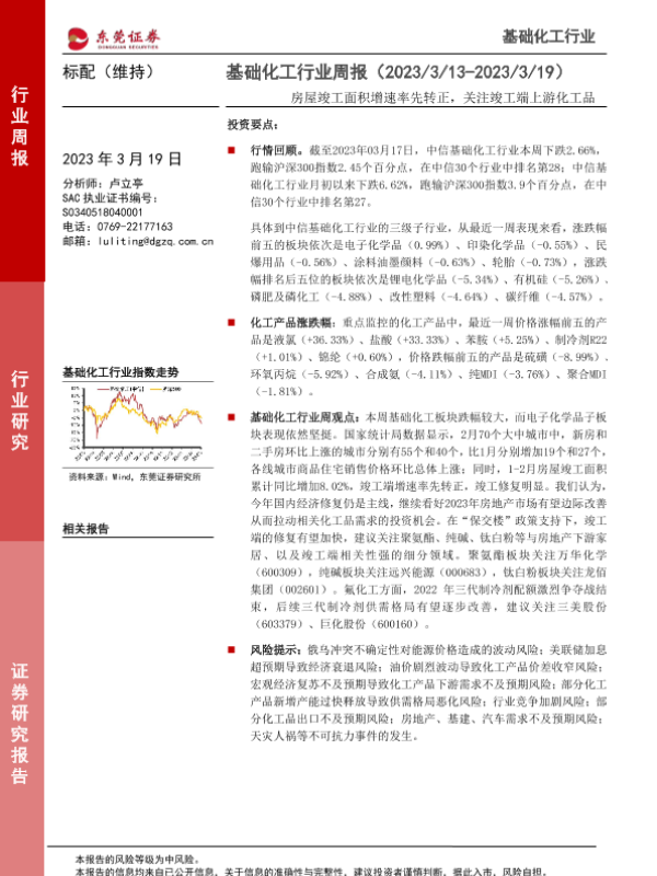 【东莞证券】【20230319】基础化工行业周报:房屋竣工面积增速率先转正,关注竣工端上游化工品-12页 行业研究