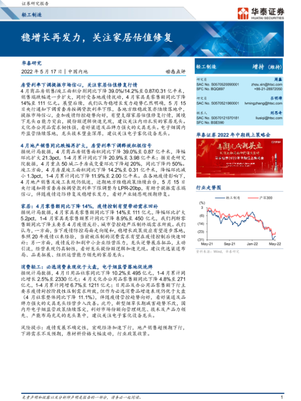 【华泰证券】【20220517】20220517-华泰证券-轻工制造动态点评:稳增长再发力,关注家居估值修复-6页 行业研究