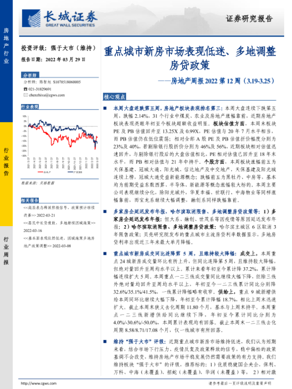 【长城证券】【20220329】重点城市新房市场表现低迷、多地调整房贷政策-19页 行业研究