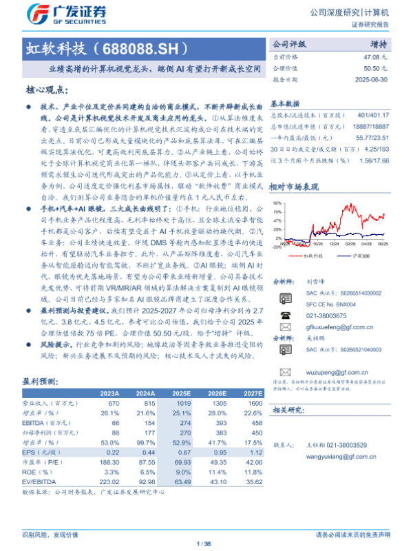 【广发证券】【20250630】虹软科技(688088.SH):业绩高增的计算机视觉龙头,端侧AI有望打开新成长空间-36页 公司研究