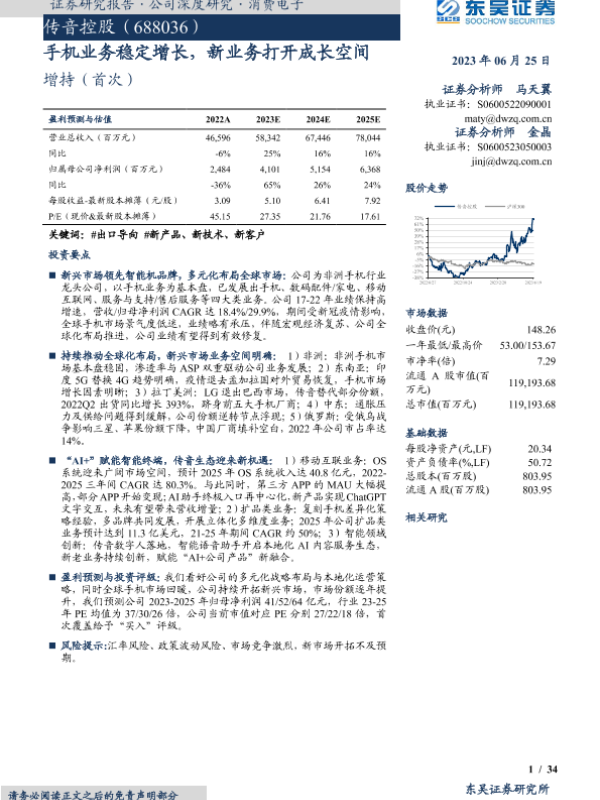 【东吴证券】【20230625】传音控股-手机业务稳定增长,新业务打开成长空间-34页 行业研究