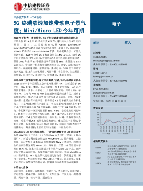 【中信建投证券】【20200108】电子行业:5G终端渗透加速带动电子景气度;MiniMicro_LED今年可期-13页 行业研究