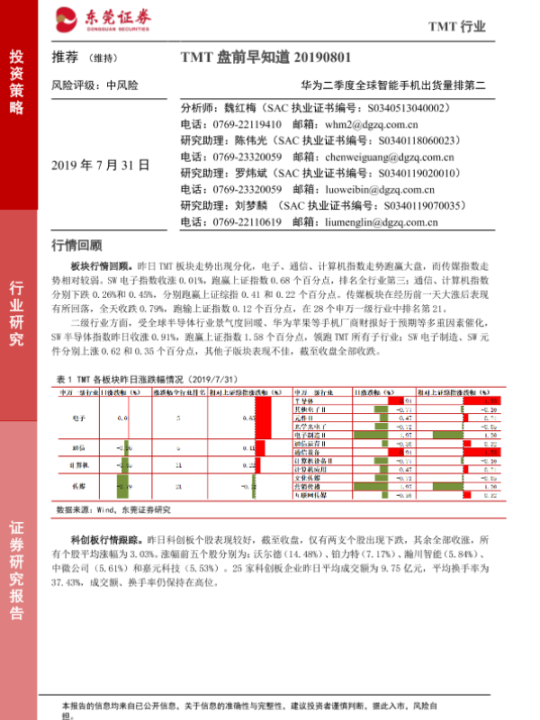 【东莞证券】【20190731】TMT盘前早知道:华为二季度全球智能手机出货量排第二-4页 行业研究