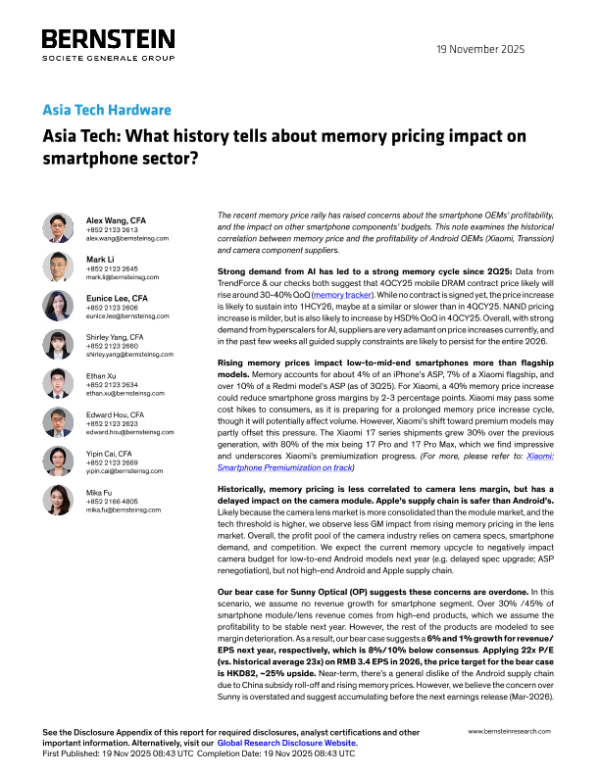 【Bernstein】【202511】Asia Tech Hardware What history tells about memory pricing impact on smartphone sector?-23页 证券期货研究报告