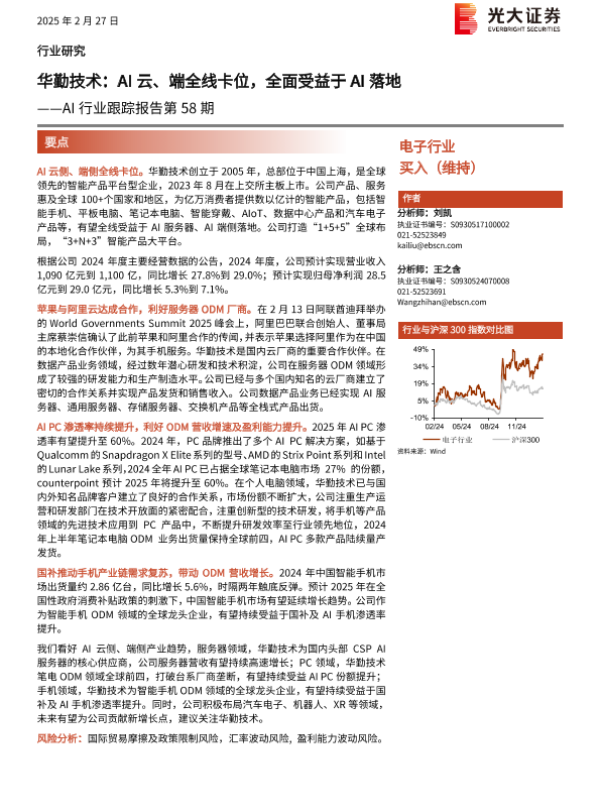 【光大证券】【20250227】华勤技术:AI云、端全线卡位,全面受益于AI落地-12页 行业研究