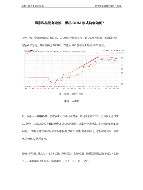 【优塾】【20200615】闻泰科技财务建模,手机ODM模式将会如何?-48页 行业研究