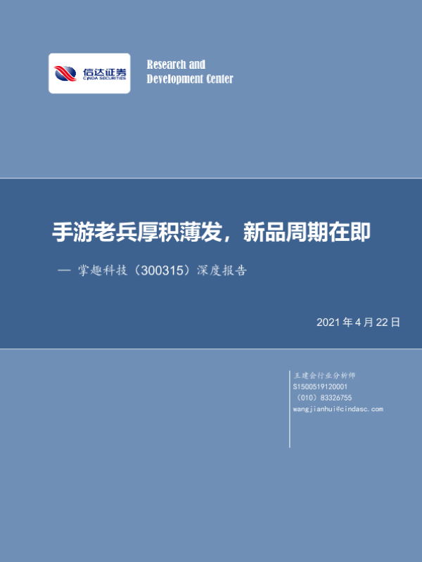 【信达证券】【20210422】20210422-信达证券-掌趣科技-300315.SZ-深度报告:手游老兵厚积薄发,新品周期在即-32页 行业研究