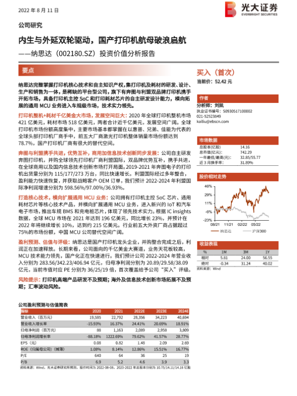 【光大证券】【20220811】内生与外延双轮驱动,国产打印机航母破浪启航——纳思达(002180.SZ)投资价值分析报告-39页 行业研究