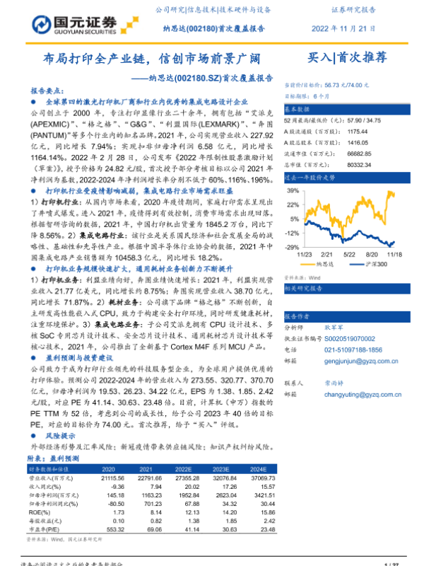 【国元证券】【20221121】布局打印全产业链,信创市场前景广阔——纳思达(002180.SZ)首次覆盖报告-27页 行业研究