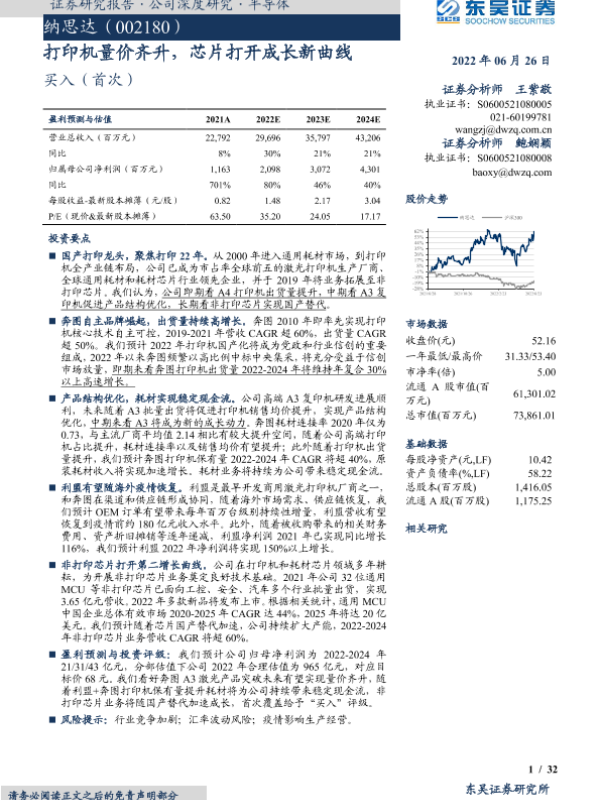 【东吴证券】【20220626】纳思达(002180)打印机量价齐升,芯片打开成长新曲线-32页 行业研究