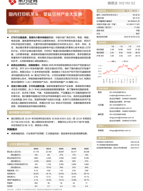 【东方证券】【20220623】国内打印机龙头,受益信创产业大发展-14页 行业研究