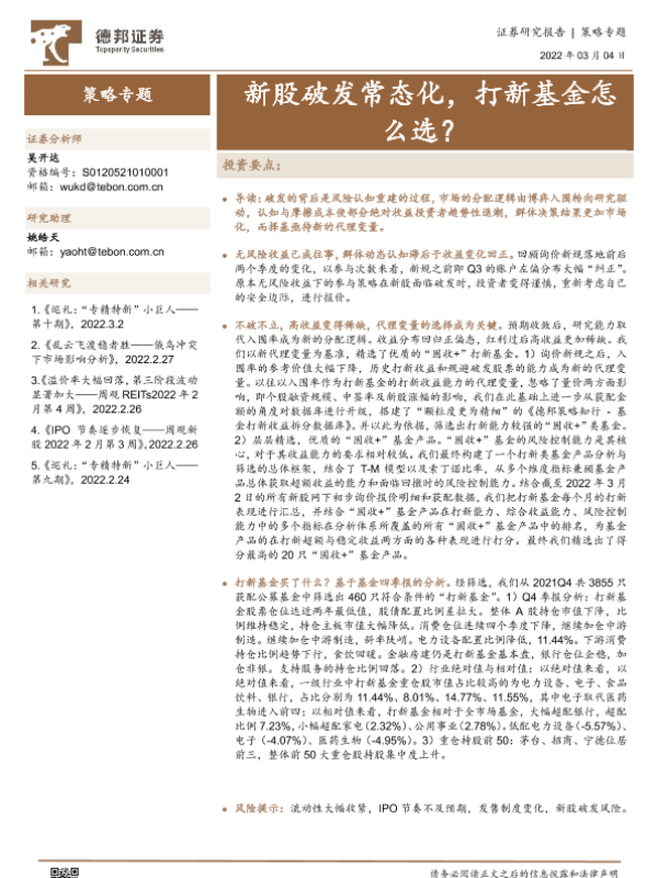 【德邦证券】【20220304】策略专题:新股破发常态化,打新基金怎么选?-23页 行业研究