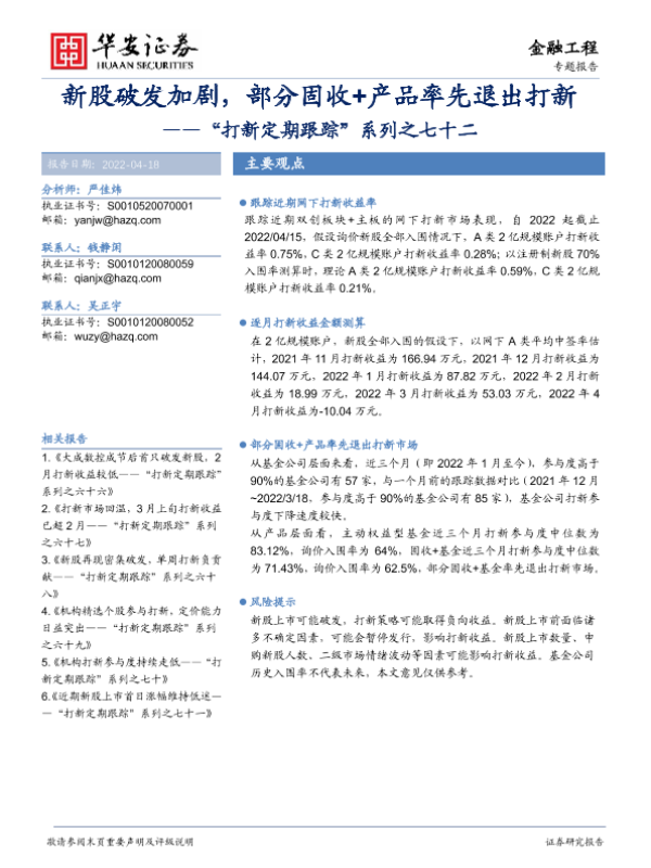 【华安证券】【20220418】“打新定期跟踪”系列之七十二:新股破发加剧,部分固收+产品率先退出打新-24页 行业研究