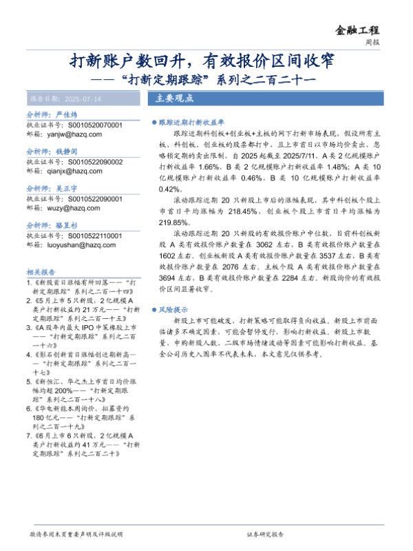 【华安证券】【20250714】打新定期_process跟踪系列之二百二十一:打新账户数回升,有效报价区间收窄-15页 证券期货研究报告