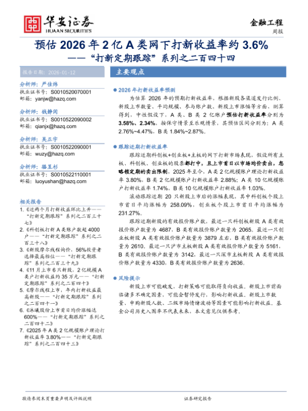 【华安证券】【202601】预估2026年2亿A类网下打新收益率约3.6%-16页 证券期货研究报告