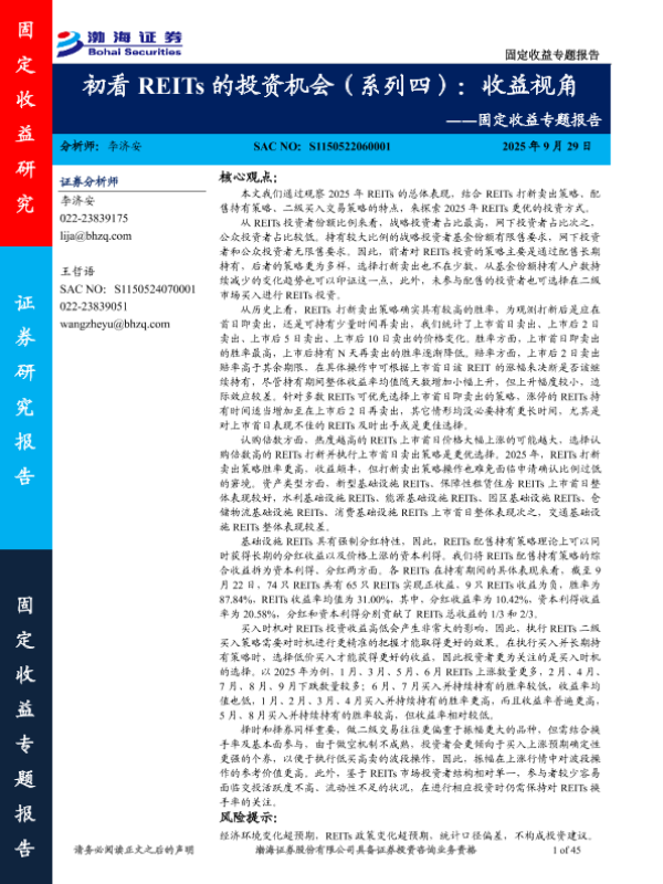 【渤海证券】【202509】初看REITs的投资机会(系列四):收益视角-45页 证券期货研究报告