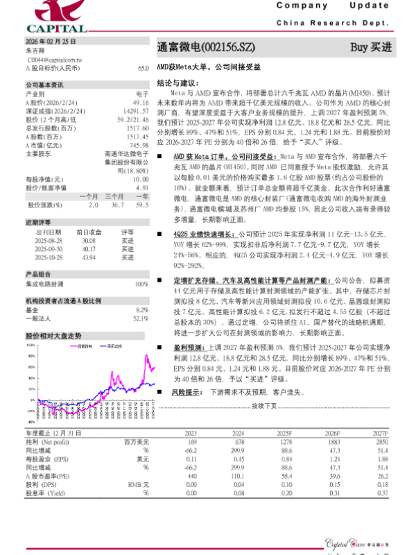 【群益证券】【202601】通富微电-002156.SZ-封测需求旺盛_公司定增扩充产能-3页 证券期货研究报告