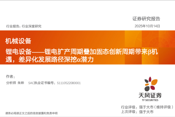 【天风证券】【202510】锂电设备——锂电扩产周期叠加固态创新周期带来β机遇,差异化发展路径深挖α潜力-48页 证券期货研究报告
