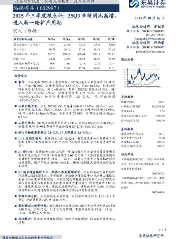 【东吴证券】【202510】2025年三季度报点评:25Q3业绩同比高增,进入新一轮扩产周期-3页 证券期货研究报告