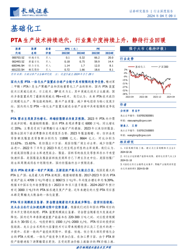 【长城证券】【20240409】基础化工行业:PTA生产技术持续迭代,行业集中度持续上升,静待行业回暖-23页 行业研究