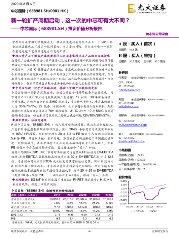 【光大证券】【20200806】20200806-光大证券-中芯国际-688981.SH-投资价值分析报告:新一轮扩产周期启动,这一次的中芯可有大不同?-30页 行业研究