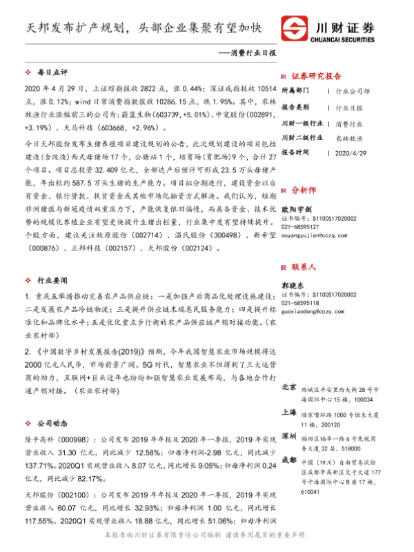 【川财证券】【20200429】消费行业日报:天邦发布扩产规划,头部企业集聚有望加快-3页 行业研究