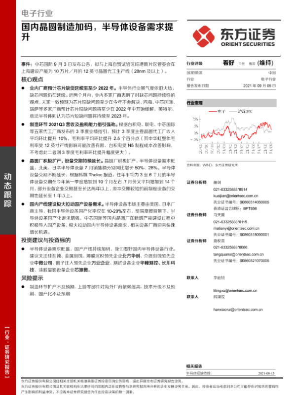 【东方证券】【20210905】电子行业:国内晶圆制造加码,半导体设备需求提升-6页 行业研究