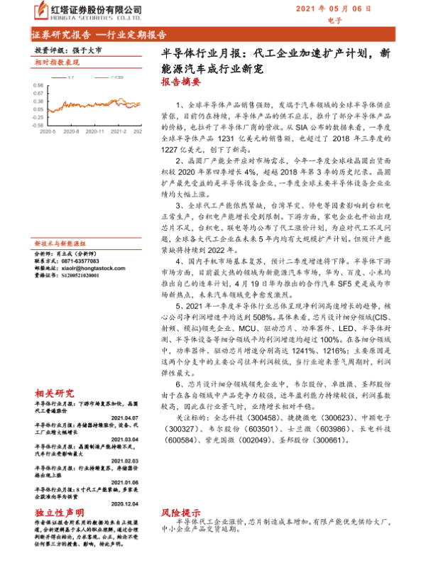【红塔证券】【20210506】半导体行业月报:代工企业加速扩产计划,新能源汽车成行业新宠-19页 行业研究