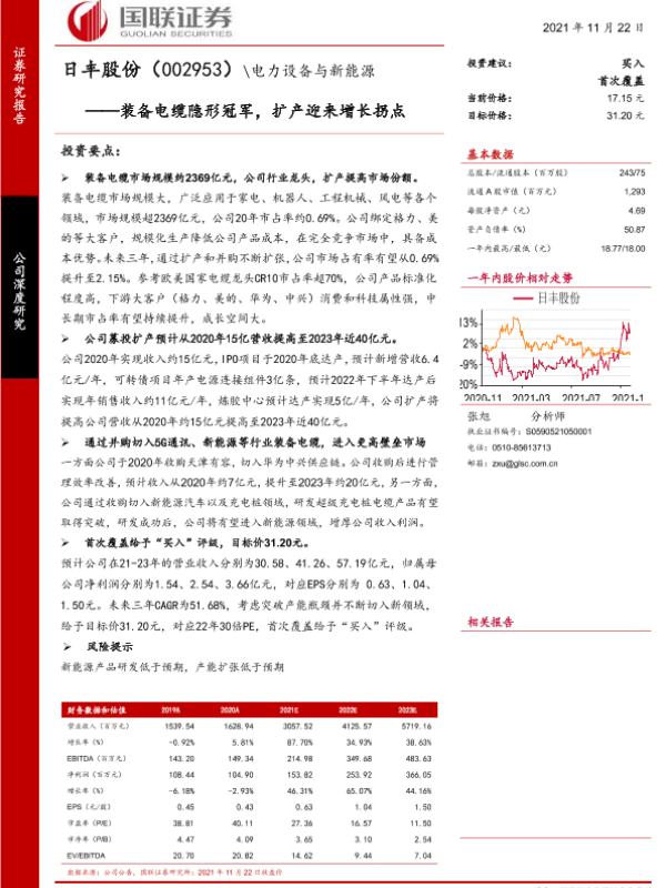 【国联证券】【20211122】日丰股份-002953.SZ-装备电缆隐形冠军,扩产迎来增长拐点-18页 行业研究