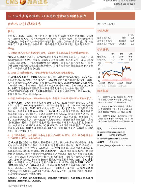 【海通证券】【20250116】台积电24Q4跟踪报告-3、5nm节点需求强劲,AI加速芯片贡献长期增长动力-11页 行业研究