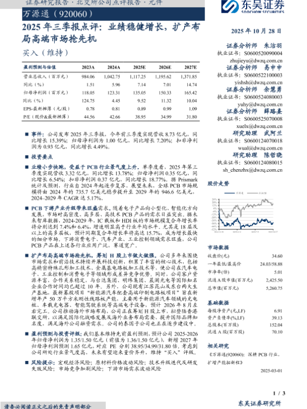 【东吴证券】【202510】2025年三季报点评:业绩稳健增长,扩产布局高端市场抢先机-3页 证券期货研究报告