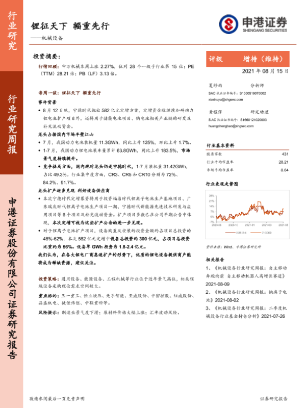 【申港证券】【20210815】锂征天下 辎重先行——机械设备-13页 行业研究