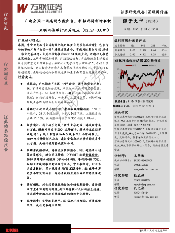 【万联证券】【20200302】互联网传媒行业周观点:广电全国一网建设方案出台,扩招或将利好职教-17页 行业研究
