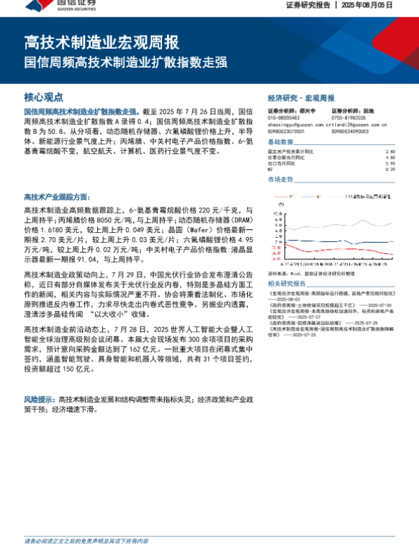 【国信证券】【20250805】高技术制造业宏观周报:国信周频高技术制造业扩散指数走强-8页 证券期货研究报告
